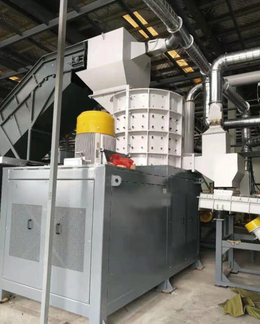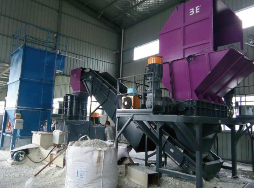 It is used to collect and crush foam. During subsequent processing, it improves the volume reduction efficiency and enables better separation of plastics from the foam in the secondary separation stage. This process is critical to the recycling line, and the associated equipment has obtained a national patent.